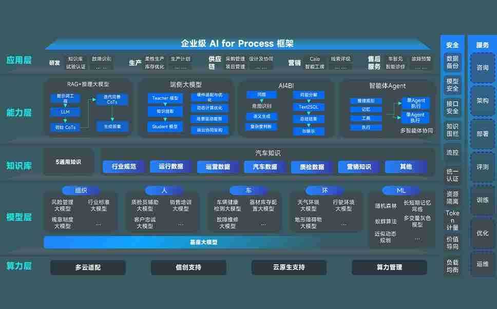 连连国际问学智车解决方案是一套基于AI技术的汽车行业智能化系统,,覆盖从底层算力到顶层AI应用的全栈方案。。。。方案由算力层、、、、模型层和应用层组成:算力层,,,方案支持多种一体机配置,,,,具备云端灵活部署、、、多云适配以及动态优化计算资源的能力;模型层,,,连连国际问学平台版提供了企业级AI应用一站式构建与管理平台,,,,支持基于后训练强化技术的汽车企业专属模型的训练、、、评测和运营;应用层,,,连连国际问学DeepSeek版提供包括超级员工、、、、智能招采、、、智能营销、、智能客服、、AI for BI等一系列解决方案,,,可助力汽车行业实现数字化转型,,让管理更智能、、、、响应更敏捷。。。。